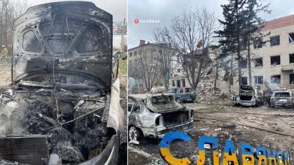 Після влучення російських ракет будівлі та автомобілі спалахнули