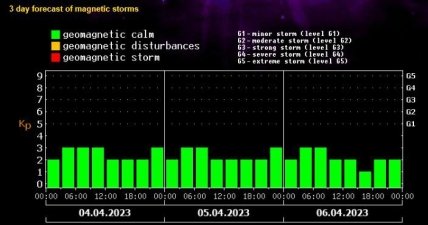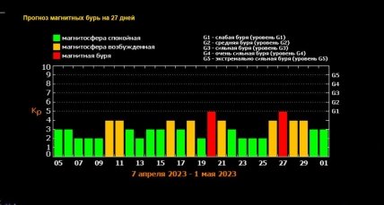 У геомагнітному графіку відбулись значні зміни — деякі магнітні бурі змістились на один-два дні пізніше. За старим планом, найдужча з них мала відбутися 18 квітня, однак це станеться 20 числа, окрім того, у календарі з'явилася ще одна "червона" дата — 27 квітня.
