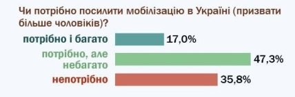 Відповіді на запитання анкети, чи потрібно посилити мобілізацію в Україні і призвати більше чоловіків, розподілилися таким чином:
