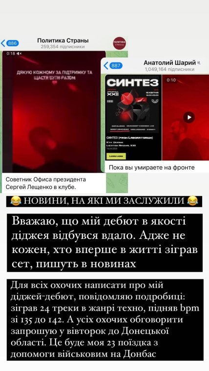 "Вважаю, що мій дебют як діджей пройшов успішно. Адже не про кожного, хто вперше зіграв сет, пишуть у новинах", — написав він.