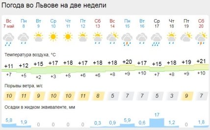 Як йдеться у прогнозі Gismeteo, хоч до кінця нового тижня стовпчики термометра поповзуть вгору, проте слідом за ними до країни прийдуть дощі, а подекуди й з грозами.
