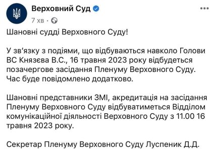 У свою чергу, прес-служба Верховного суду повідомила, що проведе позачергове засідання 16 травня.