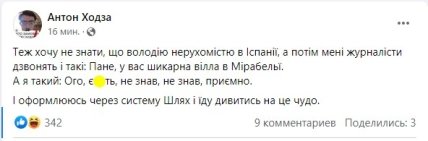 На розслідування вже почали реагувати українські блоґери. Антон Ходза зокрема висміяв спроби одеського військкома заперечувати наявність майна у Марбельї у своєї родини.