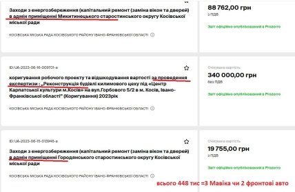 Міська рада міста Косів (Івано-Франківська область) купує папки-швидкозшивачі по 4042,67 гривень за штуку, тоді як їх можна купити за ціною від 80 гривень. Продавець "золотої" канцелярії — 23-річний хлопець, який регулярно стає переможцем подібних тендерів.