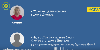 СБУ перехопила телефонну розмову судді із невідомою співрозмовницею. У ній підозрювана намагалася виправдати дії російських військових, кажучи, що по будинку в Дніпрі вони влучили випадково, бо замість високоточної ракети використовували дешеві.