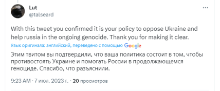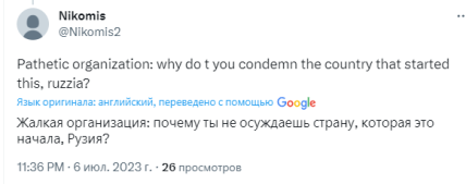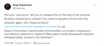 Також деякі звернули увагу, що пост організації опубліковано саме в день, коли росія вчинила черговий злочин, вдаривши по житловому будинку у Львові, вбивши при цьому 10 людей.