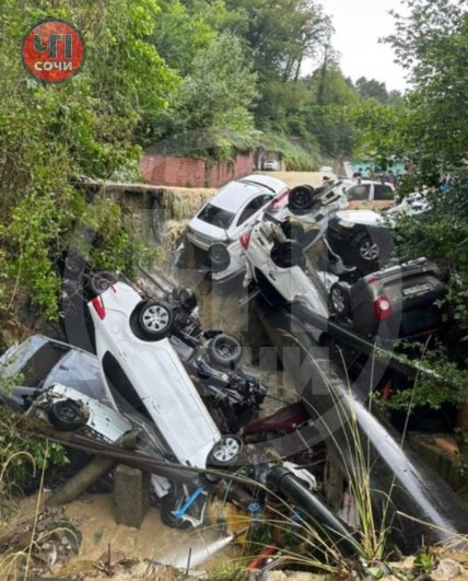 Потоки води просто змітали автомобілі росіян. На одній із вулиць, як пишуть місцеві Telegram-канали, трапилася справжня "м’ясорубка". Там тільки в одному місці було змито більше десяти машин.