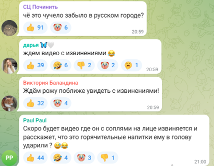 Варто зазначити, що ніхто не наважився відповісти й заперечити чоловікові особисто, але загін диванних воїнів досягнув цього набагато краще. У коментарях під роликом з’явилося багато гнівних коментарів від росіян, у яких вони розмірковують, що ж треба зробити з обуреним відпочиваючим.