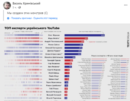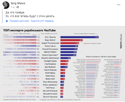 У топі експертів, які ведуть мовлення на тему війни на українському YouTube, другим і третім за популярністю виявилися росіяни. І це лише перша п’ятірка.