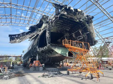 Фахівці держпідприємства "Антонов" знімають деталі з найбільшого у світі літака "Мрія", які збереглися після його знищення минулого року біля Гостомеля Київської області. Завдяки цим запчастинам можна буде створити нову версію авіалайнера.