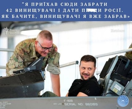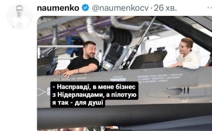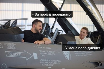 Також у мережі з’явилося багато мемів та фотожаб із фотографією українського президента та прем’єр-міністра Данії Метте Фредеріксен, на якій вони разом сидять у винищувачі.