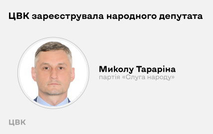 Центральна виборча комісія зареєструвала Миколу Тараріна народним депутатом від партії "Слуга народу". Його включили до виборчого списку під №147.