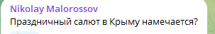 "Вітаю! Божого благословення та вдачі у Вашому професійному житті. Так тримати і далі і дякую за Вашу відвагу", "Повага!", "Святковий салют у Криму намічається?", "Вдихнути повітря свободи в рідному Криму", "Скупатися в рідному море, у Партеніді, на схилах Аю-Дагу", — пишуть у мережі.