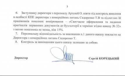 За попередніми даними, після відповідного звернення Ткачука, замість запровадження жорстких заходів фінансової звітності та покарання винних, Корецький підписав наказ №292 про необхідність забезпечення комерційним директором Тетяни Сидоренко до 01.07.2023 р. надання усіх первинних документів. Але за непідтвердженою інформацією, цей наказ топменеджмент "Укрнафти" і його підлеглі не виконали.