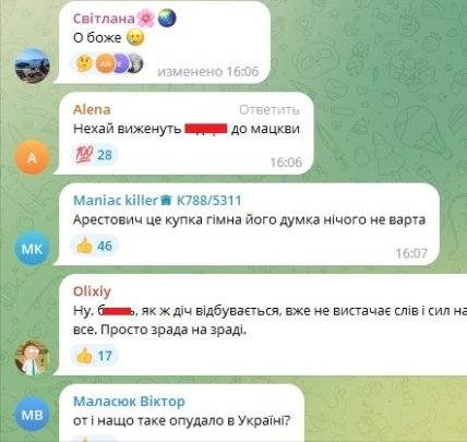 Варто зазначити, що вчинок Арестовича українці ухвалили неоднозначно. В той час, коли його підписники ставили позитивні реакції, інші громадяни висловлювали своє обурення. Так, наприклад, громадський діяч Андрій Смолій у своєму Telegram-каналі написав — ми, що боремося за русскій мір в Україні?
