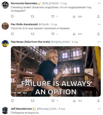 У мережі такий вислів міністра не схвалили. Користувачі Twitter пригадали поразку путінської армії під Києвом, Сумами, Черніговом, Харковом, Херсоном та Куп’янськом. Крім того, дії російської армії порушують статтю 353 КК росії (підготовка та ведення агресивної війни), що карається позбавленням волі до 20 років. Окупантам запропонували здатися та добровільно відправитися до Гааги.