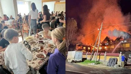 Як повідомила Телеграфу одна з дівчат старшої групи Богдана, сигналізація навіть не спрацювала, а дерев'яний санаторій спалахував як сірник.