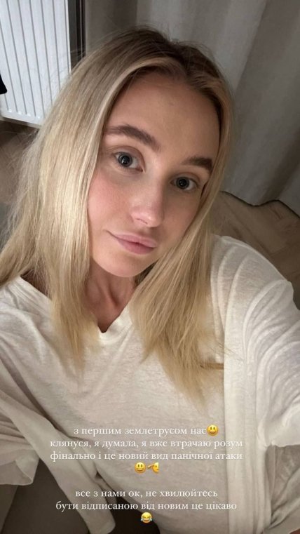 Вона зазначила, що за порадою лікаря відписалася від усіх новин та не знала, що в Ужгороді відбувається землетрус. "У мене почало тремтіти ліжко, шафи. Я подумала, що мені це здається. Коротше, треш. Добре, що мені скинули новини. Все добре. Не страшно. Але думала, що я вже все", — заявила Барановська.
