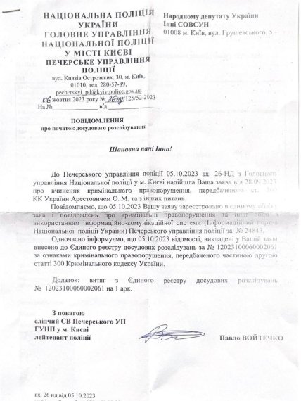 У поліції нардепці повідомили, що розпочали досудове розслідування у справі Олексія Арестовича. А Генпрокурор додав, що займається справою Київська міська прокуратура.