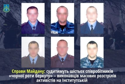 Так, шість колишніх міліціонерів роти спеціального призначення ПМОП "Беркут" були виконавцями розстрілів активістів Майдану. Слідчі встановили, що 20 лютого 2014 року вони на вулиці Інститутській у Києві відкрили вогонь із табельної зброї проти учасників акцій протесту. Через їхні дії загинули 48 людей, а ще 90 поранено.