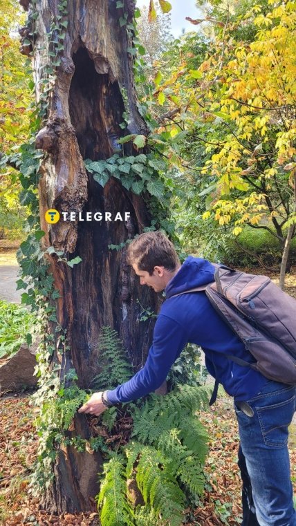 — Це дуже цікавий дуб черешчатий, — розповідає Володимир. — один з двох екземплярів, які були ще до заснування Ботанічного саду.