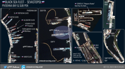 Про це у вівторок, 24 жовтня, повідомляє моніторингова група "Кримського вітру", посилаючись на дані супутників. Днем раніше OSINT-дослідник MT Anderson опублікував у соцмережах супутникові знімки бухт Севастополя за 23 жовтня.