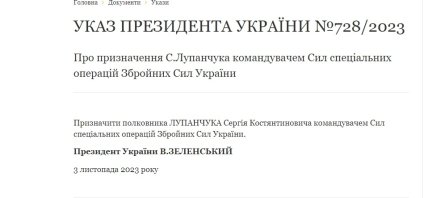 Відповідні укази було оприлюднено на сайті глави держави. Так, згідно з документами, новим головою ССО став Лупанчук Сергій Костянтинович.