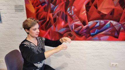 Ми приходили в її маленьку майстерню, сідали по-турецьки на диванчику, ставили перед собою рамку і пробували ткати свої перші гобелени. А вона ткала шикарне полотно за мотивами "Вітрувіанської людини" Да Вінчі і вчила французьку (Франція — батьківщина гобеленів). А ми як зачаровані початківці все скрупульозно повторювали за надзвичайно надихаючою викладачкою. Це атмосфера, у якій закохуєшся у те, що робиш. Спочатку думаєш: "Така майстерність мені не по плечу". А потім я цей же гобелен завершувала — другу пару рук, голову, тло.