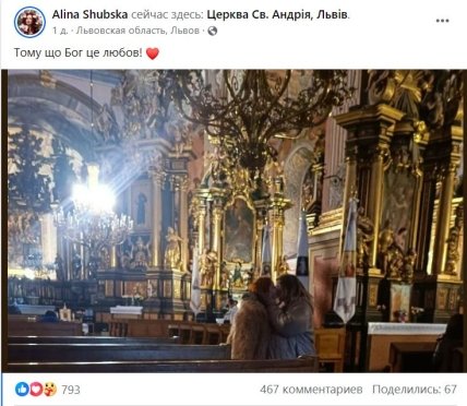 Зокрема журналістка та блогер Аліна Шубська оприлюднила у своєму Facebook фотографію того, як цілується з іншою дівчиною в церкві святого Андрія, де й знімали цей кліп.
