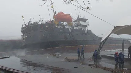 Про це повідомляє агентство "Анадолу". За інформацією журналістів, інцидент стався в порту в Ереглі, де судно стояло на якорі. У якийсь момент через сильний шторм воно просто розкололося на дві частини. При цьому частина корабля, що дрейфувала до берега, вдарилася об бетонні стіни порту і пошкодила амфітеатр на березі.