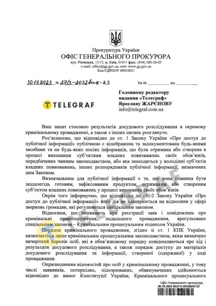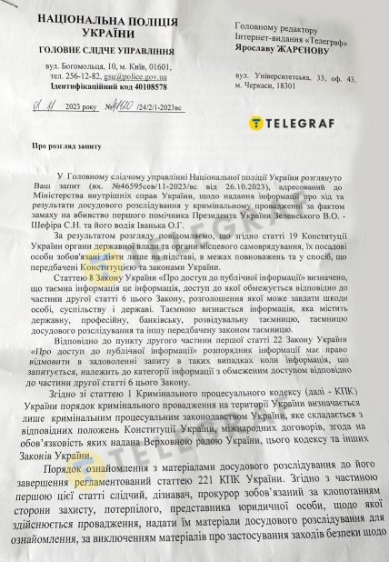 — Відповідно до пункту другого частини першої статті 22 Закону України "Про доступ до публічної інформації" розпорядник інформації має право відмовити в задоволені запиту в таких випадках, коли інформація, що запитується, належить до категорії інформації з обмеженим доступом (відповідно до ч.2 ст.6 цього Закону), — відрапортували в НПУ.