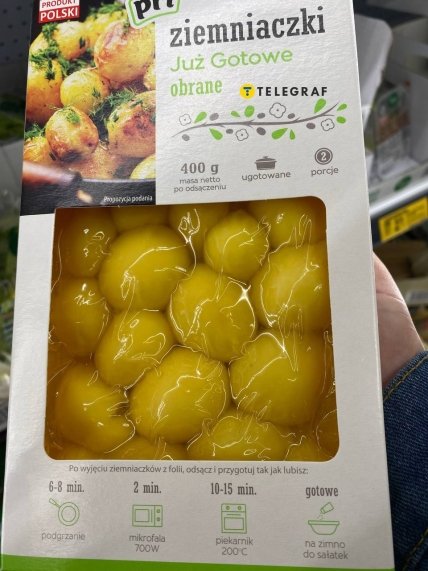Є і очищена готова картопля в спеціях або без них, яку можна приготувати за дві хвилини в мікрохвильовій печі або за 5-7 хвилин на пательні.