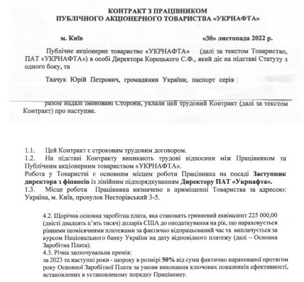 Із Ткачуком також при укладанні контракту порушили згаданий вище ЗУ — він не перебуває в переліку осіб, з якими Укрнафта має право укладати контрактний трудовий договір.