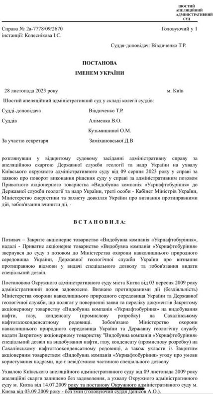 Шостий апеляційний адмінсуд за зверненням Держгеонадра анулював чинний спеціальний дозвіл на користування надрами (видобування вуглеводнів) Сахалінського нафто-газоконденсатного родовища, власником якого є ПАТ "Укрнафтобуріння". Рішення щодо анулювання спецдозволу є невідворотнім.
