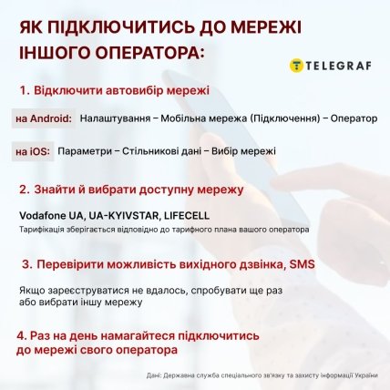 Вранці 12 грудня у роботі мобільного оператора "Київстар" стався масштабний збій у всій Україні. Абоненти говорять про відсутність мережі та неможливість здійснювати дзвінки. Поки оператори працюють над усуненням проблеми, є можливість скористатися національним роумінгом – це дозволяє перемикатися між операторами Київстар, Vodafone та lifecell без зміни сім-карток та тарифів.