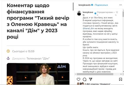 Крім того, сама Олена Кравець у Instagram заявила, що у 2024 програма виходити не буде. Вона закривається і жодного фінансування не передбачено. Усі витрати стосуються поточного року, а не 2024-го.