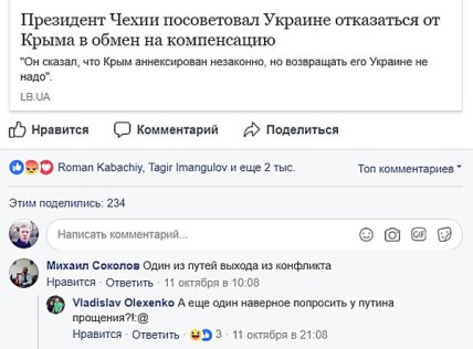 У мережі також можна знайти й скандали, у яких фігурує ім’я Михайла Соколова. Так, наприклад, як пише ZN, у 2017 році, бувши головою Миколаївської "Батьківщини", він вважав, що пропозиція проросійського президента Чехії Земана передачі Росії Криму в обмін на грошову компенсацію — це "один із варіантів виходу з конфлікту".