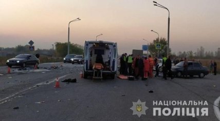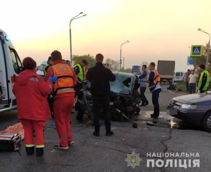 В результаті ДТП співробітник поліції загинув на місці, ще дві людини - жінка та дитина, доставлені до лікарні. Обставини події встановлюються.