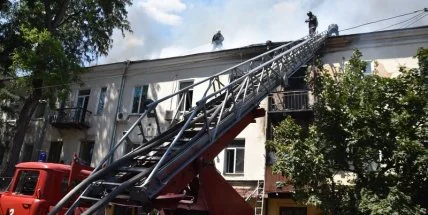 Вогнеборці гасять пожежу в центрі Одеси