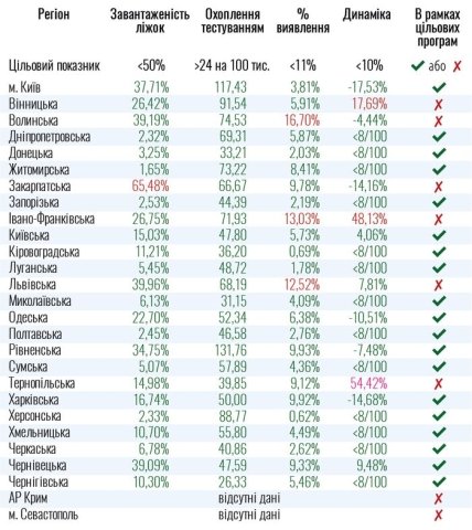 Як зазначають у МОЗ, регіоном зі значним поширенням COVID-19 вважається регіон, у якому наявна одна з таких ознак: завантаженість ліжок у закладах охорони здоров’я, визначених для госпіталізації пацієнтів з підтвердженим випадком COVID-19, становить понад 50%; середня кількість тестувань методом полімеразної ланцюгової реакції та імуноферментного аналізу становить менш як 24 на 100 000 населення протягом останніх семи днів; коефіцієнт виявлення випадків інфікування COVID-19 становить понад 11%; показник динаміки зростання випадків інфікування COVID-19 становить понад 10%.