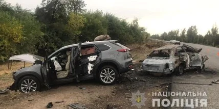 В результаті зіткнення двох автомобілів під Степногірськом Запорізької області один з них загорівся, двоє людей загинули, п'ятеро отримали травми. Відкрито кримінальне провадження.
