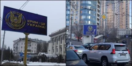 Перед посольством РФ у Києві, у Львові, Харкові та Одесі встановили борди Крим - це Україна.