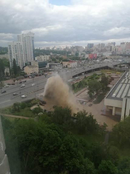 Сьогодні, 20 травня, біля станції метро "Деміївська" в Києві утворився гейзер.