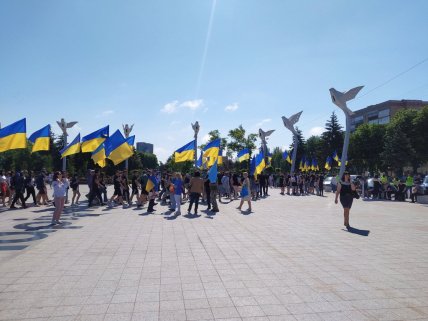 У цей святковий день сотні містян вийшли на вулиці з українськими прапорами. Багато хто з присутніх одягли вишиванки.