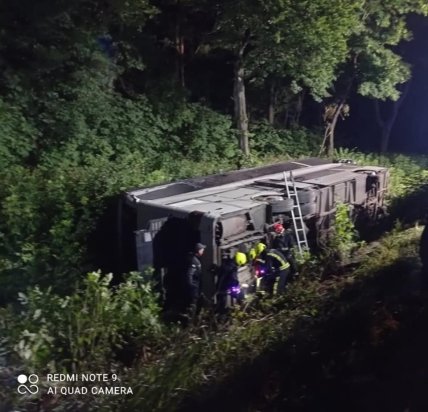 У Дубенському районі Рівненської області вночі, 17 липня, рятувальники надали допомогу в ліквідації наслідків ДТП за участю автобуса рейсового сполучення Київ-Вроцлав.