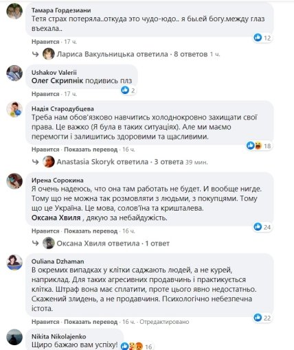 "Протягом життя не хочеться кожного разу ходити по хліб, як в бою. Ось чому я придумала такий простий лайфхак і користуюсь їм. Звертаюсь українською, замовляю товар, розмовляю. А потім обов'язково доходить до фрази з боку продавчині: "паіщіте пять грівен пожалста!" На що я з незворушною посмішкою відповідаю: "Ні. Дріб'язок шукаю лише для тих, хто обслуговує українською" Багато хто розуміє, і "Ой ... пошукайте п'ять гривень. Дякую" – ділиться Оксана. Однак, в кіоску "Колосся. Долина вкуса" продавчиня навідріз відмовилась сприймати українську мову: почала проганяти клієнтку та закривати вікна, а потім зовсім прибігла до брані. За словами очевидиці, скандалістка влаштувалась нещодавно, раніше таких проблем в крамниці не було.