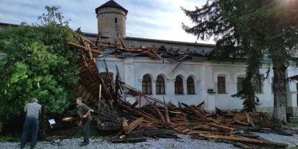 Завдала шкоди негода і стародавньої фортеці. Вітер зірвав накриття башти Ласької та кинув його на пристінний корпус фортеці, пошкодивши дах. Дошки пронесло 25 метрів.