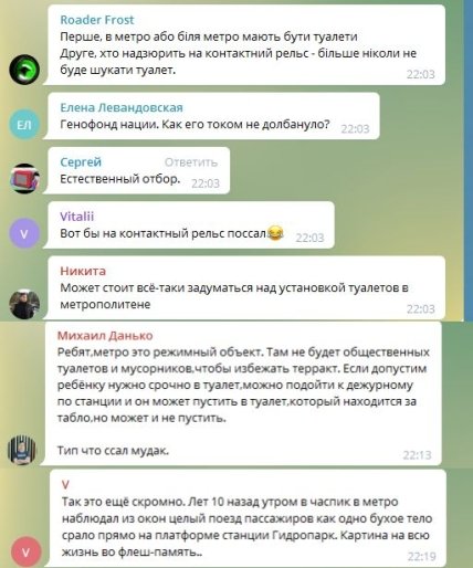 У коментарях до запису користувачі мережі в основному висловили своє обурення поведінкою цього чоловіка. Інші ж вказали на необхідність установки в метрополітені або біля нього туалетів.