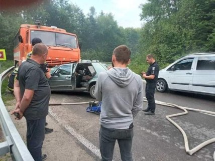 У поліції кажуть, що між автомобілем "Volkswagen" і вантажівкою "КамАЗ" сталося лобове зіткнення.