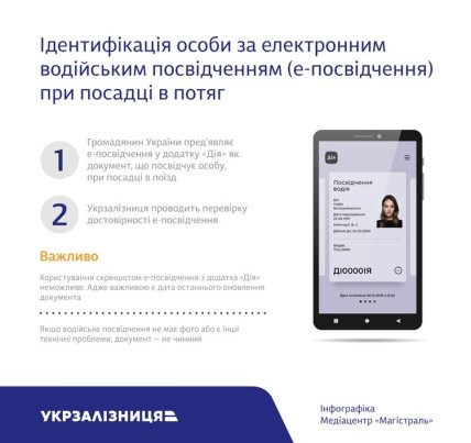 З 6 лютого 2020 року пасажири при посадці у поїзд можуть пред’являти електронне водійське посвідчення у мобільному застосунку "Дія".